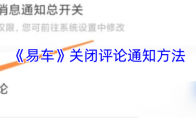 用户只需打开易车APP,进入“我的”页面,点击右上角的设置图标,进入设置界面后选择“消息通知”,然后在消息通知列表中找到“收到评论”选项,点击其旁边的开关按钮将其关闭即可。这样,用