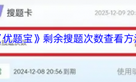 优题宝APP查看剩余搜题次数的方法非常简单:用户只需打开优题宝APP,登录后进入“我的”页面,接着点击“搜题卡明细”,系统即会展示出当前剩余的搜题次数,方便用户随时查看和管理,随