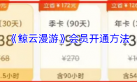 打开鲸云漫游APP,进入“我的”页面,点击“立即开通”按钮,接着系统会展示不同的会员套餐供用户选择。用户可以根据自己的需求,选择合适的会员套餐后,点击“确认协议并支付”选项,并按照