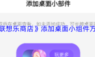 打开联想应用商店App,进入“我的”页面点击右上角设置图标,选择“其他设置”中的“添加桌面小部件”,根据提示选择小组件类型(如应用推荐、热门游戏等)并确认添加,完成后返回桌面即可查