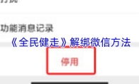 打开全民健走App,进入“我的”页面,点击“微信同步”按钮,跳转至微信运动设置页面后点击右上角“设置”图标,选择“停用”即可解除与微信的绑定;若需彻底解除微信授权,可打开微信App