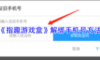 打开指趣游戏盒APP,点击“我的”选项,进入后点击“头像”,在账号与安全界面选择“绑定手机”选项,输入当前手机号获取验证码并点击下一步,之后按提示操作即可解绑原手机号,再输入新手机