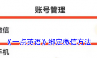 点击一点英语右下角的“我的”进入个人中心,然后在个人中心界面中找到并点击“设置”选项。接着,在设置界面中点击“账号管理”,之后点击“微信”右侧的“去绑定”。此时,会弹出一个绑定微信