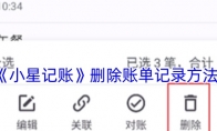 进入小星记账App,找到想要删除的账单,长按该账单记录,便会弹出功能菜单,点击“删除”选项即可快速删除单条账单记录。如果想要删除多条记录,还可以选择“批量操作”,勾选需要删除的账单