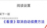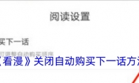 看漫APP关闭自动购买下一话的方法非常简单。用户只需打开看漫APP,进入“我的”页面,点击“设置”,然后选择“阅读设置”,在阅读设置中找到“自动购买下一话”选项,点击其右侧的滑块进