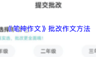 进入笔神作文主页找到人工批改区域并点击,进入批改界面后点击提交作文,能拍照转文本或直接复制粘贴作文内容,写好后提交并选择年级、期望批改字数,确定提交后会有老师线上批改;也可利用其A