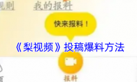 要在《梨视频》投稿爆料,只需打开梨视频APP,点击“报料”选项进入报料页面,再点击“我的报料”并选择拍摄图标进行拍摄,拍摄完成后提交即可轻松完成投稿爆料,与他人分享所见所闻。下面就