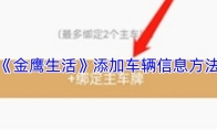 在金鹰生活添加车辆信息,可打开金鹰生活APP,点击底端“停车”选项,再点击“常用车牌”选项,进入停车页面后点击“绑定车主车牌”选项,按提示输入车牌等相关信息完成绑定,即可成功添加车