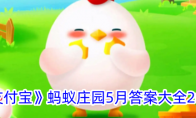 支付宝蚂蚁庄园答题活动每天都在持续进行中,这个答题活动很多小伙伴每天都会参与的。本文为大家整理了蚂蚁庄园5月今日答案大全,支付宝蚂蚁庄园答题答案5月合集2024,每天第一时间为大家