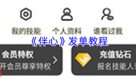 在伴心app发布陪玩信息,可打开软件点击底端“我”选项,再点击“我要发单”选项,选择需求类型(如线上连麦或线下约玩等),添加详细需求描述、设置时间地点等信息,按指引完成填写后即可成