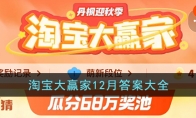 淘宝大赢家每日一猜活动是许多用户每天都会参与的,参加活动进行答题,就能领取红包奖励,然后在淘宝下单的时候就能直接使用。这里小编就为大家整理带来了淘宝大赢家12月答案大全,淘宝大赢家