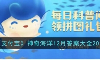 支付宝中的神奇海洋每日科普问答活动是许多小伙伴都有在参与的,参与答题获得拼图,就能解锁更多的海域。本文将为大家整理带来神奇海洋12月今日正确答案,支付宝神奇海洋12月答案大全202