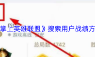 打开掌上英雄联盟APP,点击界面右下角的“战绩”按钮,再点击右上角“好友”图标,进入搜索栏后选择“查询其他召唤师”,输入要查询的召唤师名称,选择对应区服后即可进入该玩家主页,点击“