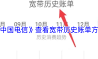 打开中国电信官方APP并登录,在首页点击【查询办理】,进入后选择【费用】,再点击【账单查询】,在账单页面选择“宽带”选项,即可查看宽带历史账单明细,包含费用金额、使用时段等信息,还
