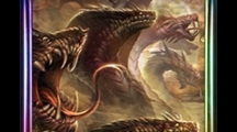 大涡祖蛇,看起来很强。特别是复仇的时候能直接召唤到上限,不过8费的限制让大涡祖蛇基本已经在后期才能出场了,加上没进化前才5/5的身材,很怕清场,上场率并没有那么高。 进化后→ 简