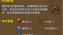 机械臂,能推出方块的自动电石机械。非常好用的工具,在结果改良和重新制作还能做出推拉机械臂,更实用。在很多工程项目中,有着很大的作用。机械臂 【合成需要】果木板X2、小木棍X3、精铁