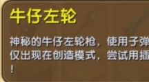 《迷你世界》牛仔左轮,非常少见的近代武器。想要使用的话只能在创造模式中使用,对想要享受体验一下迷你世界中牛仔风情的小伙伴就去玩一玩创造模式吧。牛仔左轮 【合成需要】无法合成,可在创