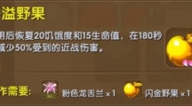 香溢野果,在减伤中最有用的食材了,大部分伤害都是怪过来砍你,把你KO的。所以近战伤害减少50%,让大家在大部分战斗中都能保障自己的安全。香溢野果 【合成需要】粉色龙舌兰X1、闪金野