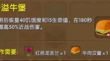 香溢牛堡,是牛肉汉堡的终极形态。提升了整整50%的近战伤害以后,让使用近战武器的小伙伴输出爆炸,带上一个就怪就是手起刀落。香溢牛堡 【合成需要】红色龙舌兰X1、牛肉汉堡X1