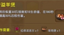 香溢羊煲是和香溢牛堡对应的高级食材,主要提升的3分钟之内的远程伤害,50%增幅非常高。有手枪或者投掷武器的小伙伴用起来非常顺手,对着怪物就是猛打。香溢羊煲 【合成需要】红色龙舌兰X