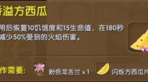 香溢方西瓜是专门克制火焰伤害的食材,食材自身的饥饿度和生命值并不强,反而很弱。一般情况下,没有克制火焰的需求,并不会制作这个香溢方西瓜。香溢方西瓜 【合成需要】粉色龙舌兰X1、闪烁