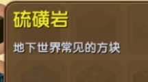 硫磺岩,在地下室常见的方块。在通常情况下是不能合成制作的。但是在迷你世界的创造模式中可以在物品栏中使用,下面就来看看硫磺岩的图鉴介绍吧。硫磺岩 【合成需要】无法合成,创造模式中可在
