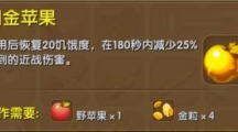 闪金苹果,和神话中的金苹果并不是一个东西。不过效果也非常强力,不仅能恢复饥饿度,还能减少25%的近战伤害。是不是想要合成,吃吃看了呢?闪金苹果 【合成需要】野苹果X1、金粒X4