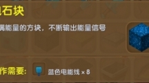 《迷你世界》基础的电能原件,可以搭配红石电路成为电路线,一般型号在超过10格后会减弱这是就需要电能产生器来加强型号了,就是中继器的作用。电能产生器 【合成需要】蓝色电能线x1、小木