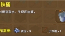 在《迷你世界》探索时,空铁桶是小伙伴出行必不可少的东西,在外面的时候可以用来取水,还有牛奶和岩浆的,收集这些液体的时候,没有一个桶可不好搞哦。空铁桶 【合成需要】铁锭x3、小木棍X