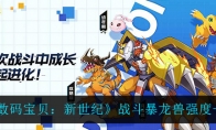在数码宝贝新世纪中玩家可以培养自己喜爱的数码兽进行战斗,很多小伙伴都很想知道游戏中的战斗暴龙兽强度怎么样,今天小编给大家带来了《数码宝贝:新世纪》战斗暴龙兽强度一览,感兴趣的小伙伴