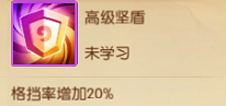 坚盾的效果比想象中实用的多,虽然格挡率只有10%,但是架不住攻击多,触发的次数还是比较多的,一个非常好的减伤技能。 盾增加格挡概率,适合近战型英雄学习比如会长、光明行者、女贼等,成