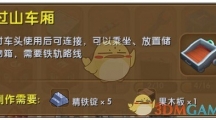 这次介绍《迷你世界》中的过山车厢,就是过山车的普通车位,用来放东西运输或者乘坐上去观光风景,就来看看下面关于过山车厢的图鉴吧。过山车厢 【用途】 对车头使用后可连接,可以乘坐、放