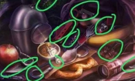 开始有教程,其他步骤就不写了,隐藏物体看下图 点击书包和左侧刀刃上的纸,所有的隐藏物体就都显示出来了,完成后得到刀游戏继续,从掉下悬崖开始用刀割断绳子点击地上的卡片,这是得到的第一