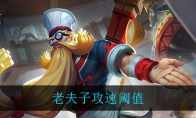 老夫子攻速阈值一共有十个档位0%、1%、10.2%、21.2%、26.2%、34.6%、51.4% 、72.8% 、101.6% 、141.8%,老夫子在铭文上就可以选择攻速铭文+