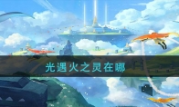 首先玩家来到雨林的第三个场景,然后往前走,走到一个躲雨的地方。往右边方向看,会有一群亮光围成的一段路,跟着指引方向飞过来。到达终点后,会看到橙色的光芒,这就是火之灵了,飞上去触碰一
