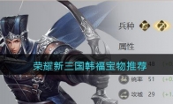 韩福可以佩戴的宝物有:掩月刀、袖箭、日月双刀、潜龙剑、双刃狂剑。荣耀新三国手游中韩福是一位用来弥补伤害阈值的武将,韩福可以对敌方造成不错的单体伤害,虽然不是多么稀有的武将但在前期还