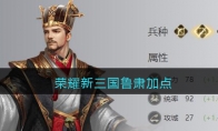 荣耀新三国手游中鲁肃是吴国辅助型武将之一,由于鲁肃技能效果是智力加成,所以推荐加点方面也是优先智力,加点推荐为:武力 0.64%、智力 81.15%、统率 6.61% 、先攻 11