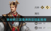 荣耀新三国手游中鲁肃是吴国辅助型武将之一,所以阵容上不能作为主C,推荐搭配阵容:1、主C-小乔、辅助-鲁肃/诸葛瑾(10御);2、主C-周瑜、主T-程普、辅助-鲁肃/孙权(19御)