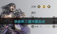 荣耀新三国游戏中华雄加点推荐:武力 88.45%;智力 0.29%;统率 4.32%;先攻 6.94%。兵种推荐:枪兵。宝物推荐:新月戟、镔铁斧、丈八长标、凤嘴刀。 荣耀新三国华雄
