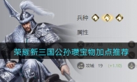 荣耀新三国游戏中公孙瓒加点推荐:武力 74.06%、智力 1.72% 、统率 12.76% 、先攻 11.46%。宝物推荐:洛神赋、雕翎冠、义从弓、塘上行。 荣耀新三国公孙瓒宝物加