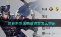 荣耀新三国手游中韩福是一位用来弥补伤害阈值的武将,推荐阵容:1、越、辅助-大乔(7御);2、主C-韩福、主T-王越、辅助-华佗/大乔(11御);3、刘备+韩福+王越+诸葛瑾;4、许