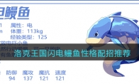 洛克王国游戏中闪电鳗鱼性格方面推荐保守和冷静,技能配招推荐:能量守护+静电场+流星掣电+高压电尾。一只走输出路线的鳗鱼,有雷暴和强化,加上三回合连击,电力应该很足。洛克王国闪电鳗鱼