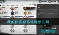 中了金环毒蛇可以通过白云明月丸进行解毒,再搭配上千机百刀叶,这样可以增强武学威力。金环蛇毒是由金环蛇胆产生的, 金环蛇毒有两个作用,第一是可以触发烈阳神功,第二是提供毒性锻体功法的