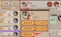 阴阳师在一次版本更新后,改变了删好友的位置,现在点好友头像就可以删除了。打开好友栏目,选择对应的好友并点击,然后就会出来相应的操作指令,我们找到删除好友指令,点击删除好友即可。 阴