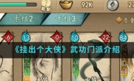 在挂出个大侠手游中武功门派怎么样呢?武功主要分为五个门派,每个门派都有各自的特点,合理搭配才是最强。那么想知道门派详情介绍的就跟随小编一起来看看吧。武功门派介绍:刀法:高暴击类型,