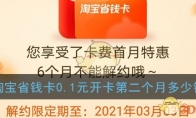《淘宝》省钱卡0.1元开卡后面每个月多少
