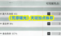 《荒原曙光》天赋加点建议优先提升暴击率与暴击伤害,其次为生命值与体力。攻击型天赋可随时重置,但生存类天赋需谨慎选择。根据PVP、采集或探索等不同玩法,可针对性配置天赋树。《荒原曙光