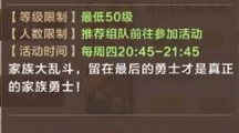 在《魔力宝贝手机版》家族大乱斗是展现家族的整体实力,为了成为最强家族的争夺战,如果想为家族争光的小伙伴,下面就来看看家族大乱斗玩法介绍吧。首席竞选 要求 最低等级为50级开启时间