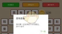 《微信疯狂猜猜》第132关的答案其实非常简单,相信不少玩家看过下面的字就找到了正确的答案。这一关的正确答案就“恶有恶报”。第132关