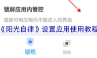 打开阳光自律app,进入锁机界面,找到“应用内管控”或“使用监督”相关功能入口,点击进入后可选择添加需要限制或监督的应用,设置该应用的使用时长、功能限制等参数,保存设置后即可对所选